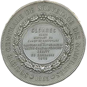 Plusieurs modèles furent successivement créés avec, à l’avers, une éffigie ou une scène maritime…, au centre du revers, la gravure du nom du titulaire et la date de l’événement.