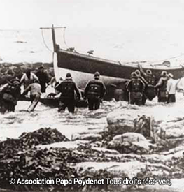 1939 Au moment de la déclaration de guerre, 44 canots à moteur et 61 à voiles et à avirons arment les 105 stations de la S.C.S.. La flotte « grand sauvetage » des H.S.B. compte 8 grands canots, 5 motorisés, 3 à voiles et à avirons. L’Occupation entraîne réquisitions et interdictions de sortir en mer, même en cas de naufrage. À la fin de la guerre, les dommages sont considérables. La S.C.S. est touchée : 29 canots détruits et 18 endommagés, 19 abris détruits ou inutilisables. Les H.S.B. ne sont pas épargnés : 4 canots motorisés sur 5 détruits ; les petits canots, les abris, les matériels de secours ont subi des dégâts très importants. Le bilan est lourd. La S.C.S. n’arme plus que 54 stations. Chez les H.S.B., c’est presque la totalité des matériels qui ont été détruits ou pillés. Les deux sociétés sont confrontées à des soucis financiers, mais la volonté de renaître est très forte. Les H.S.B. prennent en charge quelques stations de la S.C.S., dont Audierne.