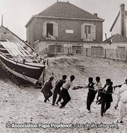 1825… À Boulogne est créée la première société de sauvetage sous le nom de Société humaine et des naufrages. Elle possède alors deux canots pour la surveillance des bains de mer et un poste de secours.