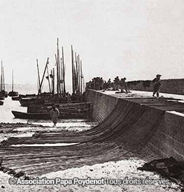 Il existe une petite cale de lancement, mais enfouie depuis bien des anées sous les sabels. Le lancement se fait donc en pleine plage, d’ailleurs sans difficulté, car le sable est relativement dur ; selon la direction du vent, on l’exécute tantôt à l’est, tantôt à l’ouest du Mole ; la population maritime, nombreuse et pleine d’ardeur, en vient vite à bout, et par tous les temps.